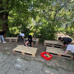 Palettenbänke für Schulgarten (Mönchfeld)